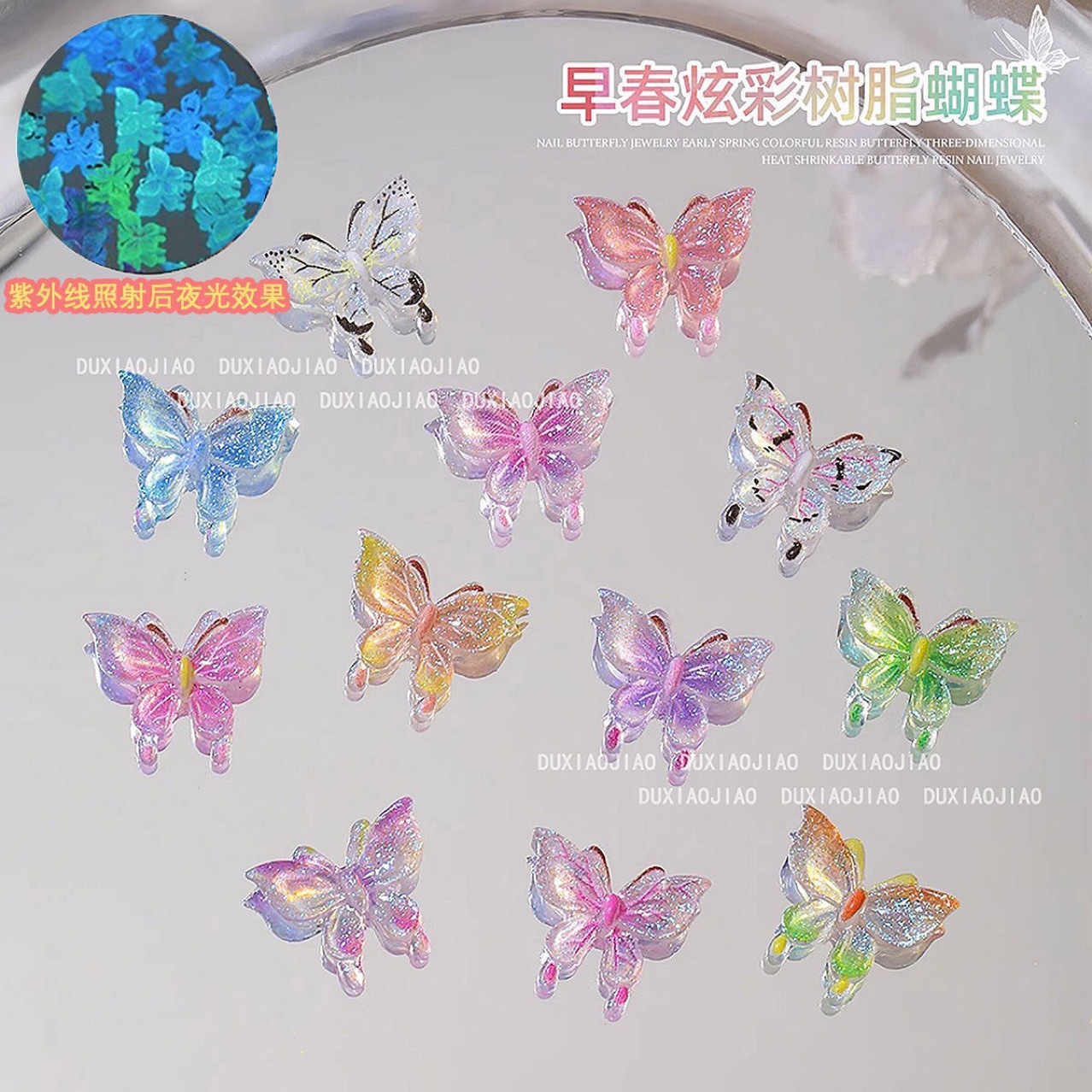夜光蝶ネイルアクセサリー立体グラデーション精霊蝶diy爪小蝶カラー樹脂小物
