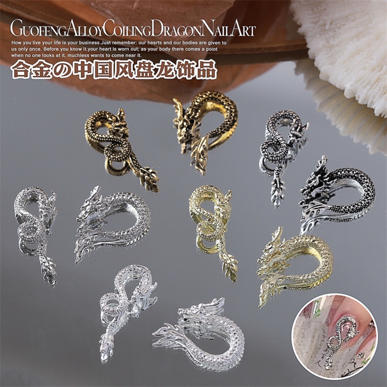 国境を越えた新型中国風生肖龍年ネイルアクセサリー復古金属合金龍金銀爪装飾卸売り