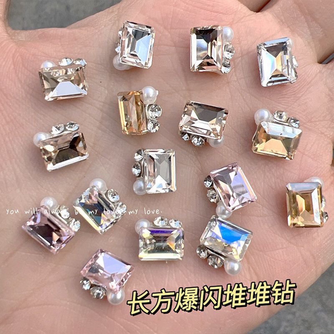人気のネットセレブ角砂糖パイルマニキュア完成品ダイヤモンドボール超光沢のあるジュエリー直角長方形氷砂糖マニキュアジュエリー