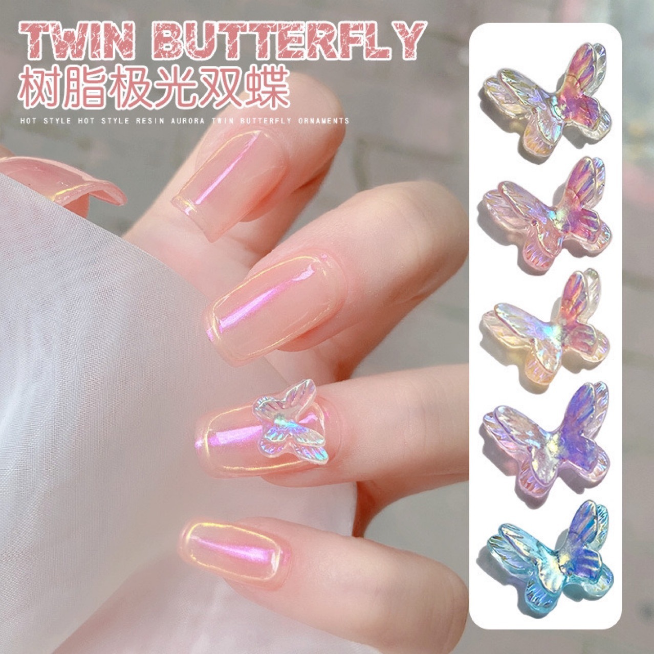 ネイルアート樹脂二重極光蝶アクセサリー2022新ネット紅爆金夏立体幻彩装飾爪ドリル