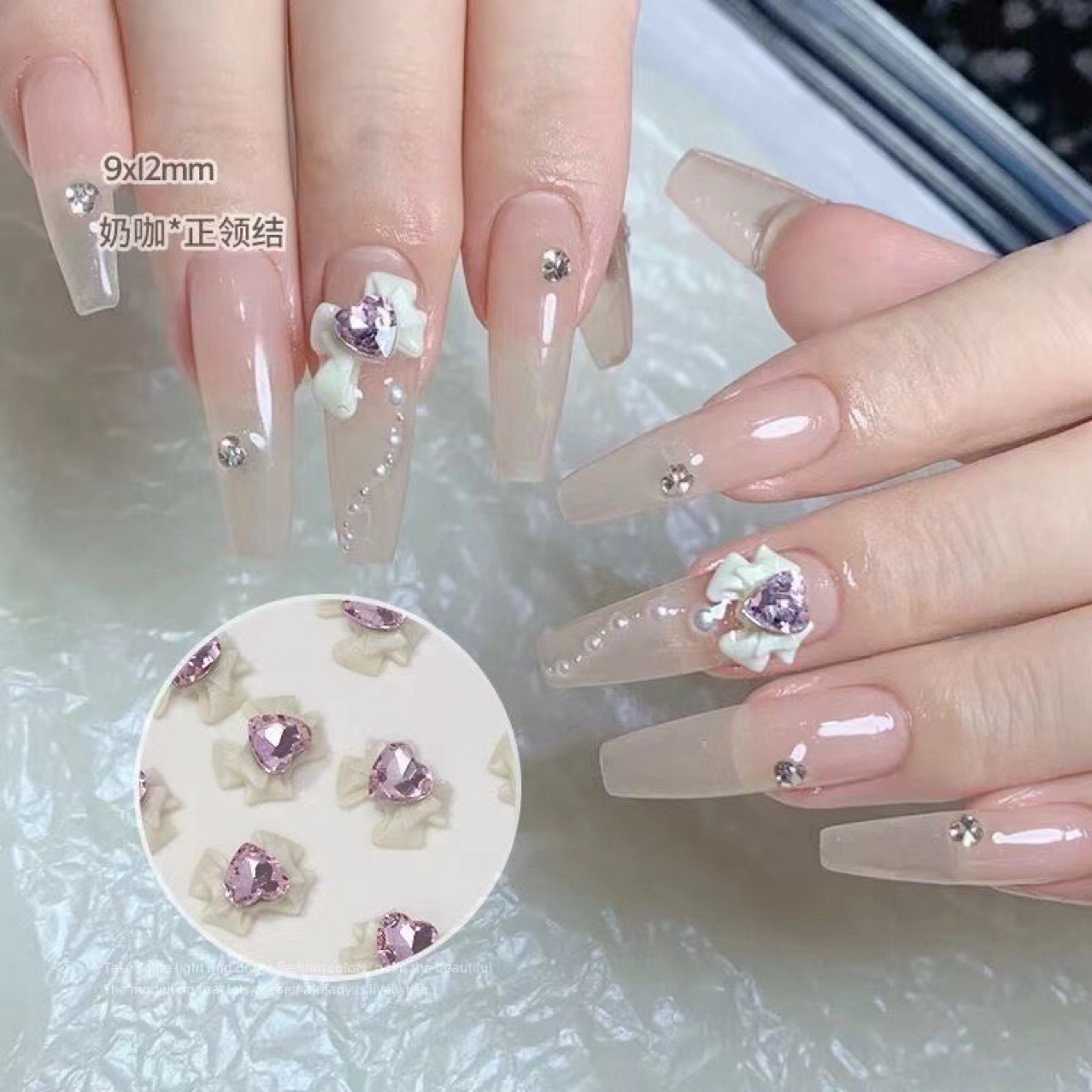 インターネット有名人オーガンザリボンパイルダイヤモンド高品質ピジョンエッグネイルアートジュエリー合金レースリボンネイルダイヤモンドジュエリー