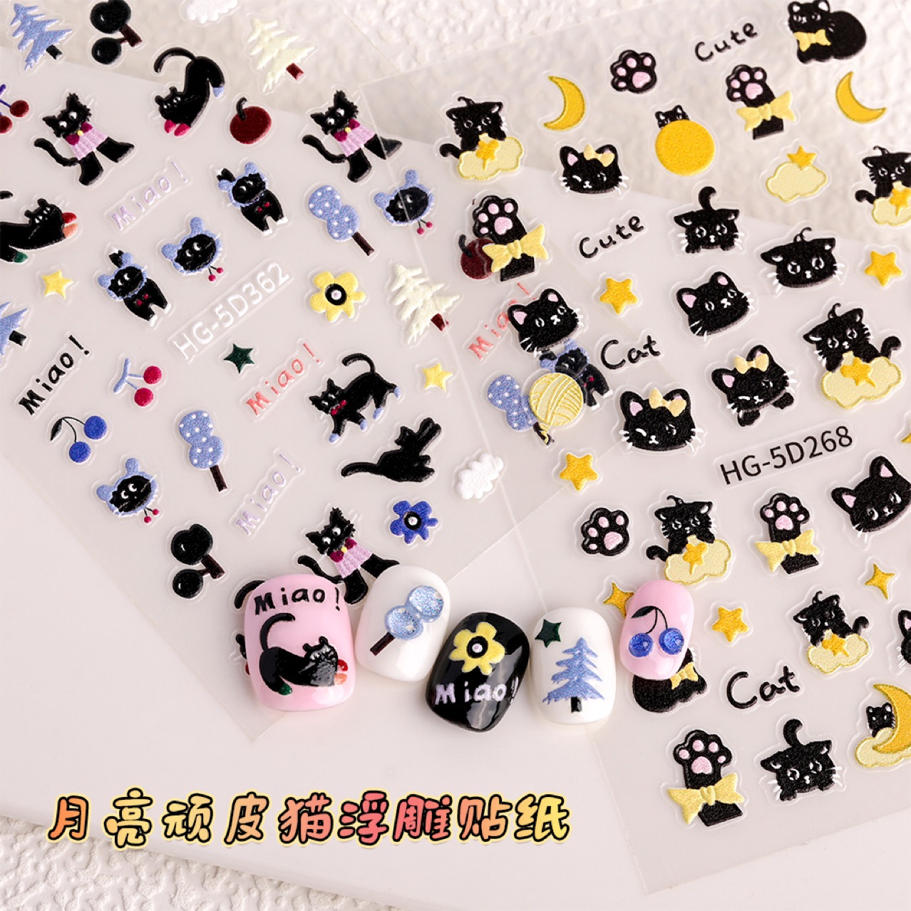 Ins黒猫浮き彫りネイルシールかわいいアニメ星月黒猫爪シールアクセサリー