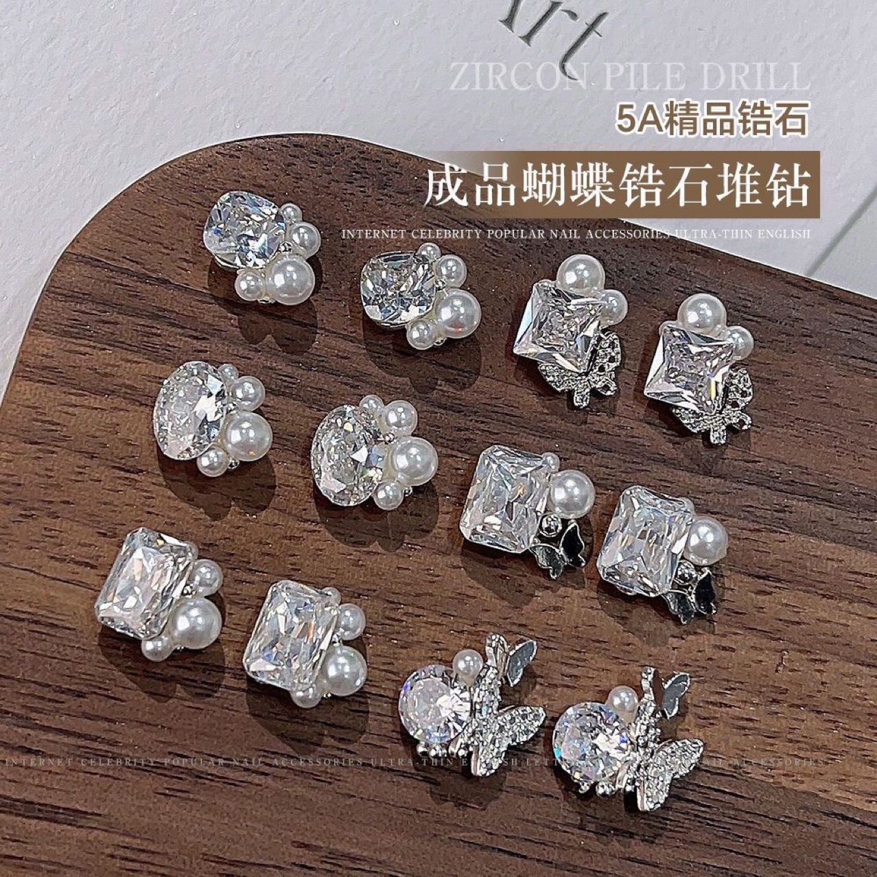 新型5A完成品蝶ドリルネイルアクセサリー高炭素ドリル火彩氷糖真珠ドリル爪装飾