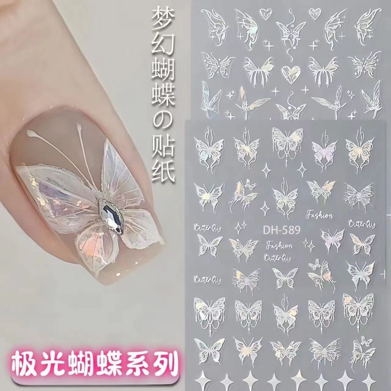 ネイルステッカー夢幻蝶ネイルステッカー極光幻彩人魚尾蝶星芒薄靭防水爪貼り