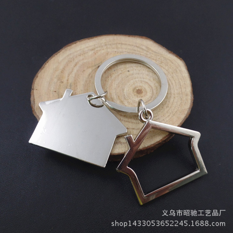 金属の家のキーホルダーの回転の家のキーホルダーの不動産の販促の贈り物の両面の刻字のlogo
