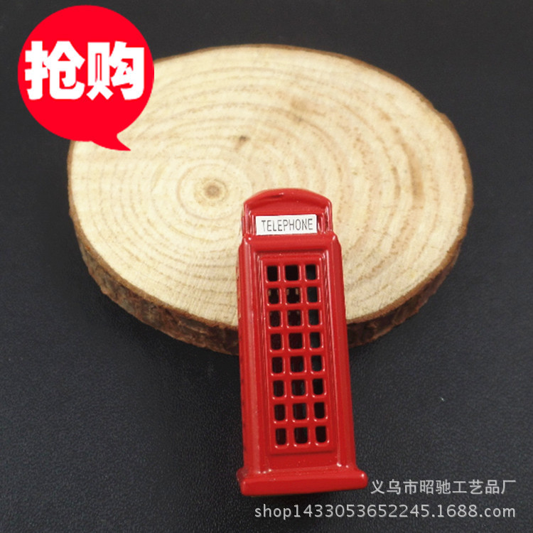 イギリスの電話ボックスの冷蔵庫は立体の電話ボックスを貼って、イギリスの旅行の記念品の販促品を貼っています。
