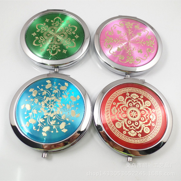 クリエイティブプロモーション両面折りたたみポータブルcdパターン化粧小さなミラー金属美容ギフトミラー卸売