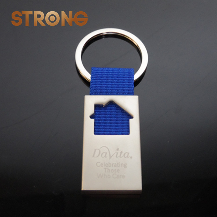 青いリボンのキーホルダー金属の家の革のキーホルダーの自動車の標識のキーホルダーの実用的な小さい贈り物
