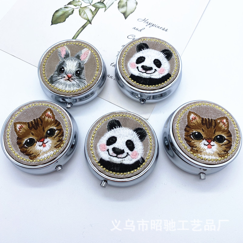 円形の金属の薬の箱の手作りの刺繍の漫画の薬の箱の萌えのペットの動物のアクセサリーの箱の口紅の香膏の箱