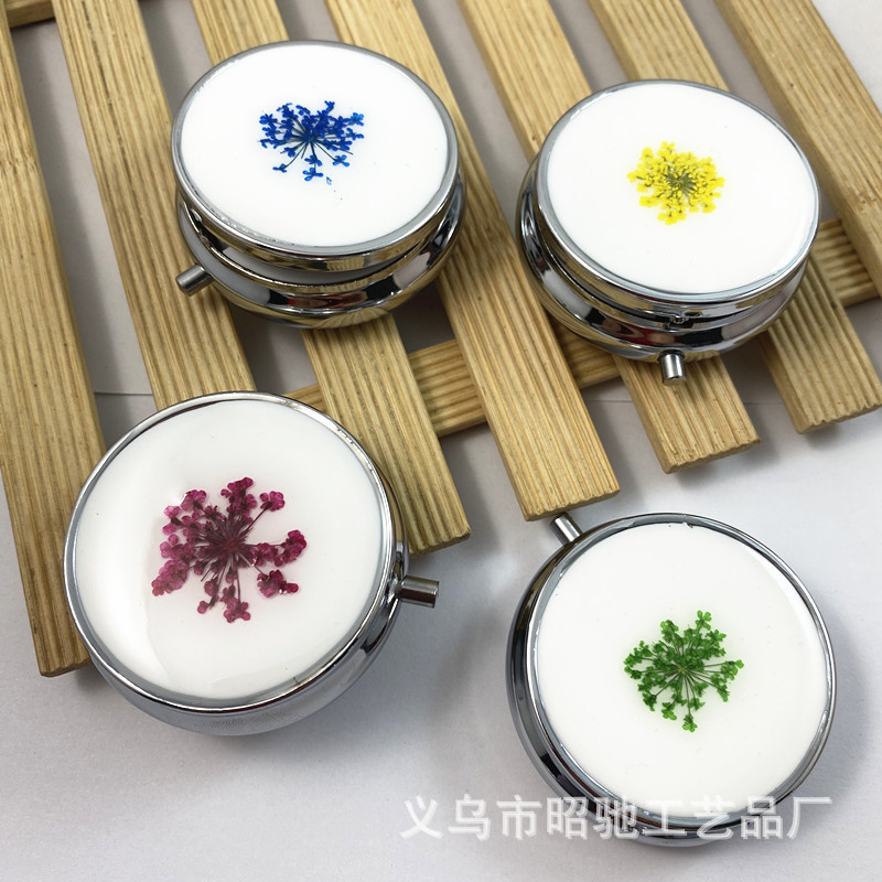 丸い金属の薬の箱の真の花のレースの薬の箱の滴のゴムの乾いた花の箱の雪の真珠の花の口紅の香膏の箱