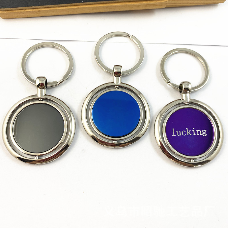 広告の小さい贈り物の金属の回転の丸いキーホルダーのアイデアのカラー鋼の鍵のチェーンのペンダントの印のロゴの刻字