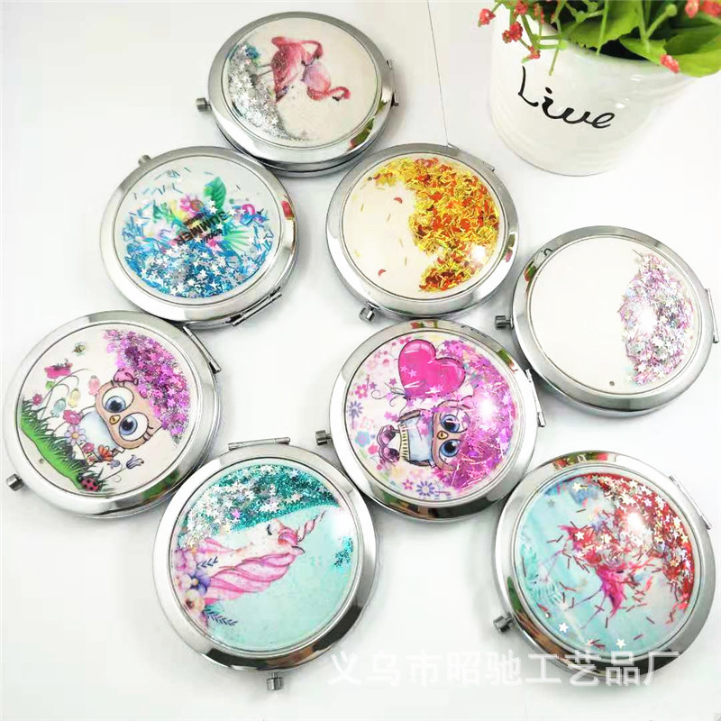 創意個性贈り物円形流砂面携帯鏡折りたたみ両面化粧鏡創意美容鏡
