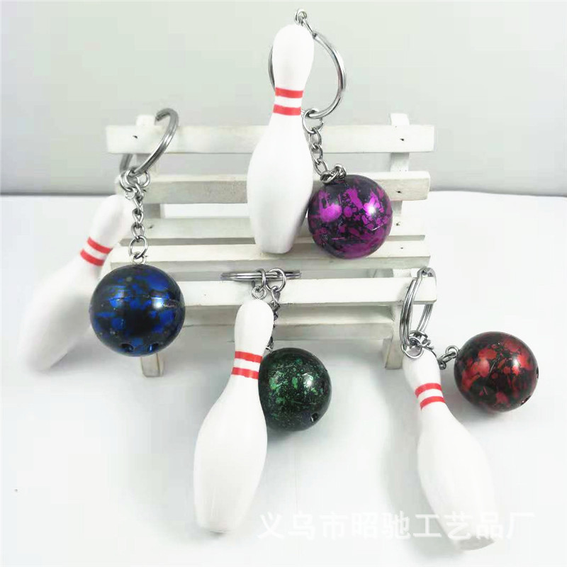 特徴的なボーリングスポーツのキーホルダープラスチックカラーキーペンダント模造キーホルダー卸売りロゴ