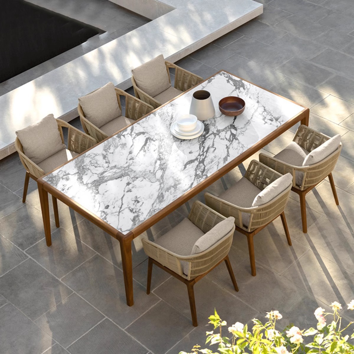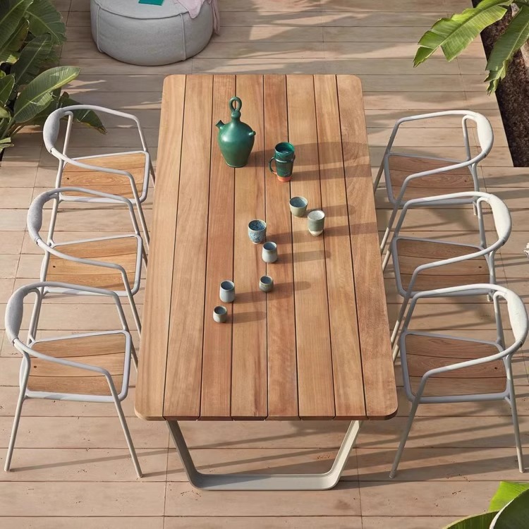 屋外ダイニングテーブルと椅子チーク材防雨日焼け止めシンプルな籐家具屋外バルコニー籐オープンエアレジャーガーデンヴィラ
