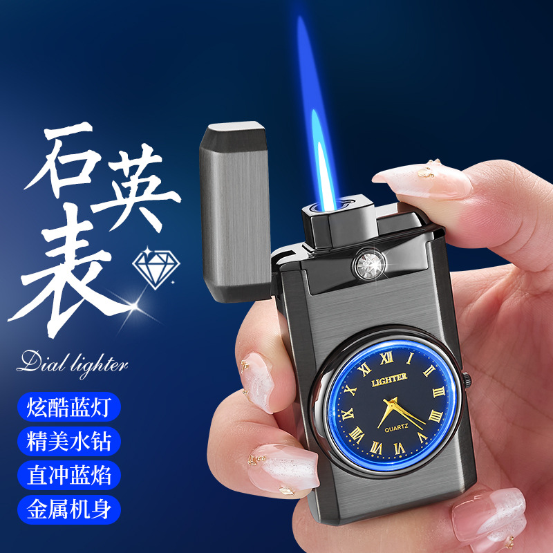 個性的な腕時計の空気入れのライターの精巧な青い明かりの文字板はダイヤモンドのファッションを入れてまっすぐにタバコの器の贈り物を注文して彼氏に送ります。