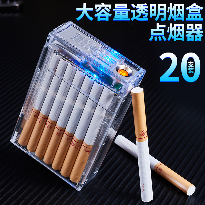 大容量透明シガレットケースシガレットライター20本防水防圧防湿包装usbライター付きネットレッド