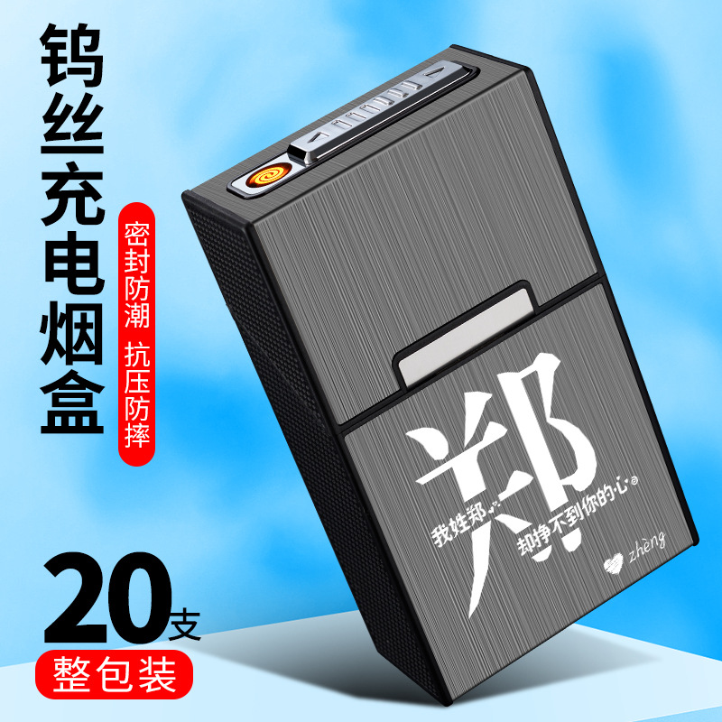 ダブルタングステン線ライタータバコケース一体機防風防湿防変形充電創意彫刻広告ロゴクロスボーダー
