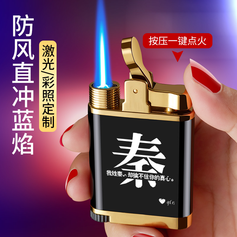 Qd109レバー押し点火空気入れ防风ダブル直冲金属ライター点シガー可视エアロゾル火机