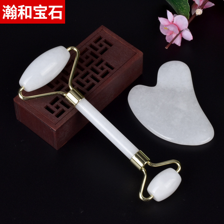 玉ローラースポットグリーン東陵玉フェイシャルマッサージローラー美容スティック玉ハート形スクレーパーセット