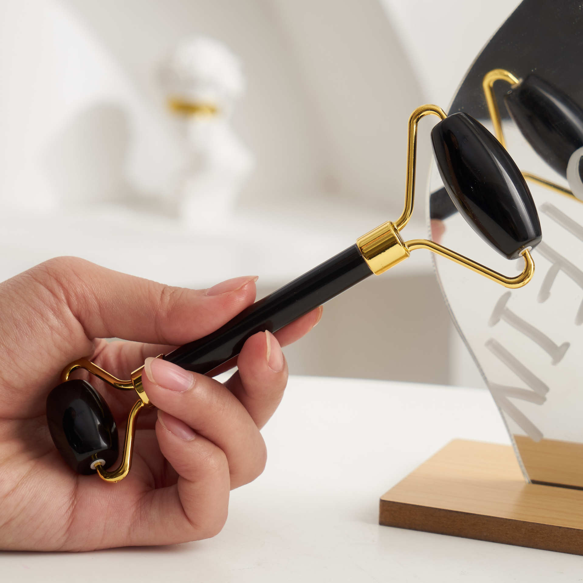 メーカー卸売り黒曜石ローラー黒玉ローラー現物顔美容二頭顔養生マッサージ器