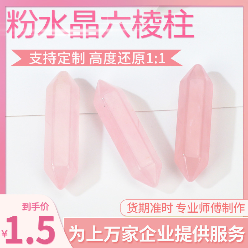 粉晶緑東陵双尖柱エネルギー柱水晶柱芙蓉石六角柱玉部品卸売り