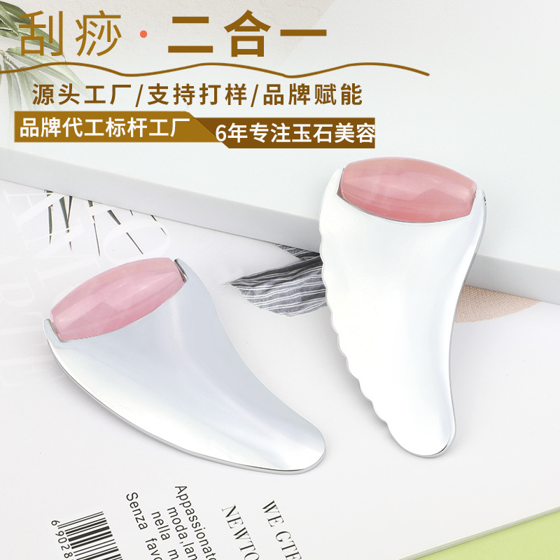 S型粉水晶スクレーパー顔専用玉板東陵玉美容マッサージ粉晶スクレーパー