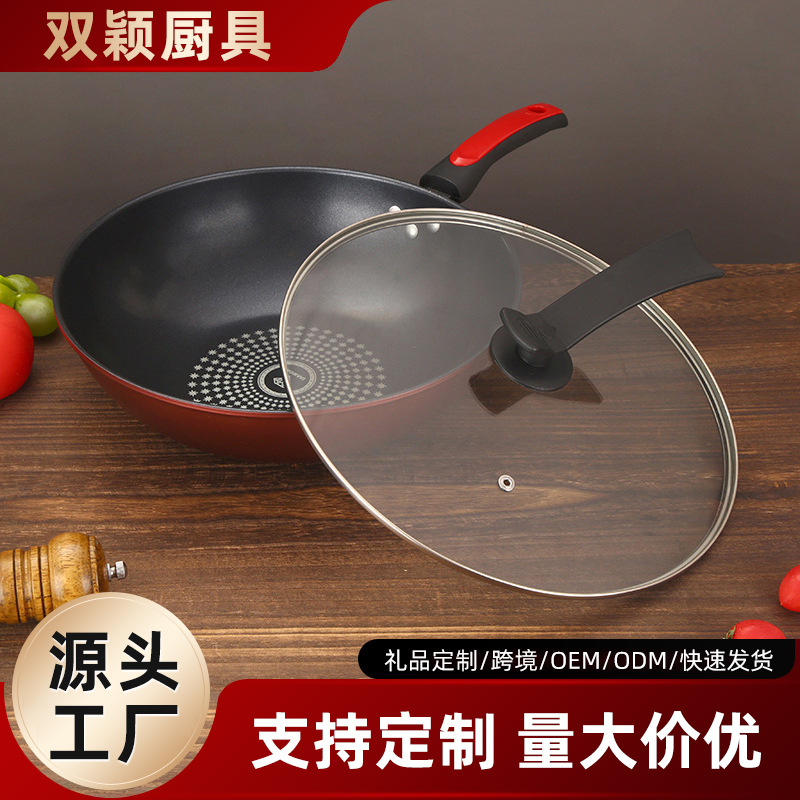 国境を越えた新型ダイヤモンド麦飯石炒め鍋家庭用平底無粘炒め鍋ガラス防爆立蓋鉄鍋卸売り