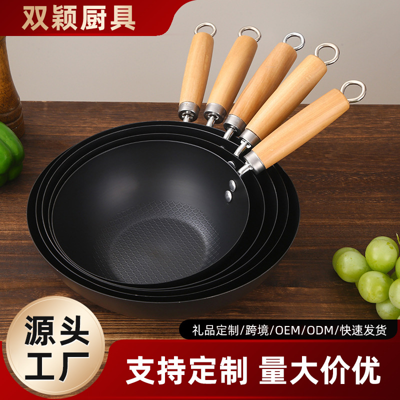 精鉄の小さい炒め鍋はコーティングの鉄の鍋がなくて、ミニは鍋の小さい鍋にくっつきません。