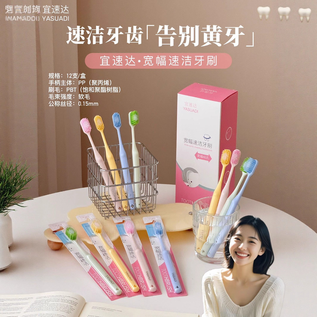日本製ワイドヘッドカラフル歯ブラシシングルパックラージヘッド大人家庭用柔らかい毛歯ブラシメーカー在庫あり