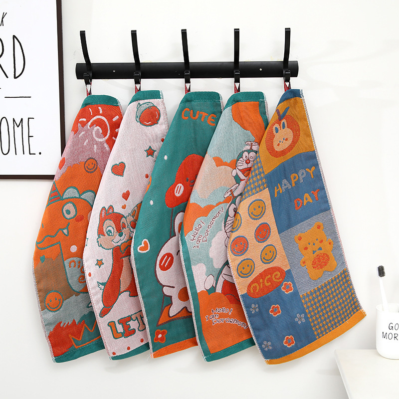 綿100%ガーゼ子供用タオル、赤ちゃん用漫画柄ジャカードフェイスタオル、柔らかく吸水性があり、毛羽立ちなし、手拭きタオル、幼児用