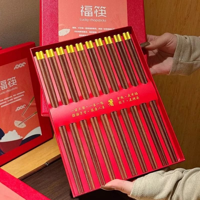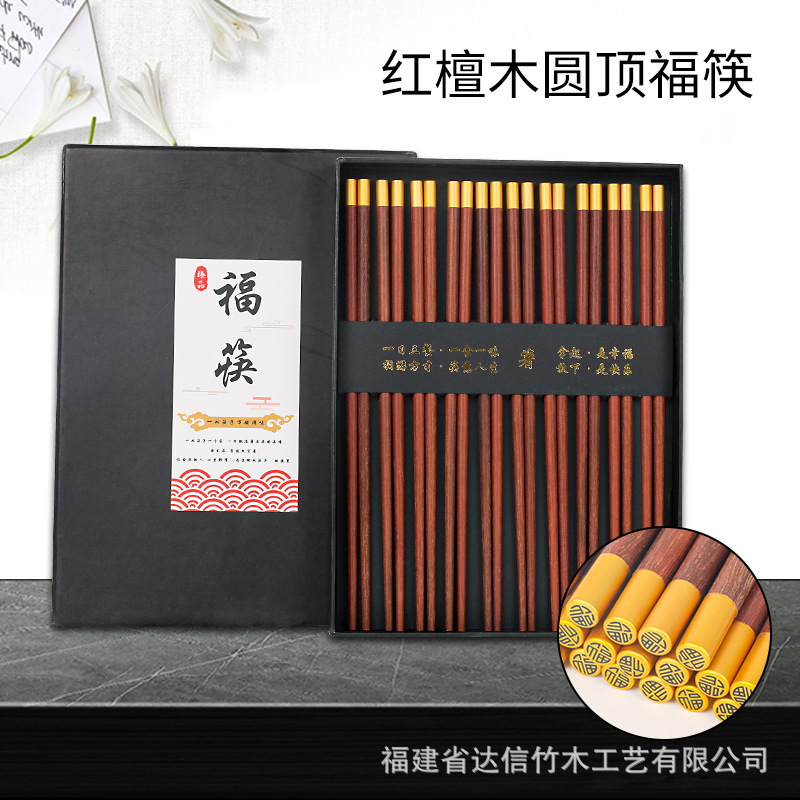 新年鴻運紅檀木福箸箸10足【無漆/無蝋/実木】家庭用