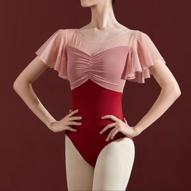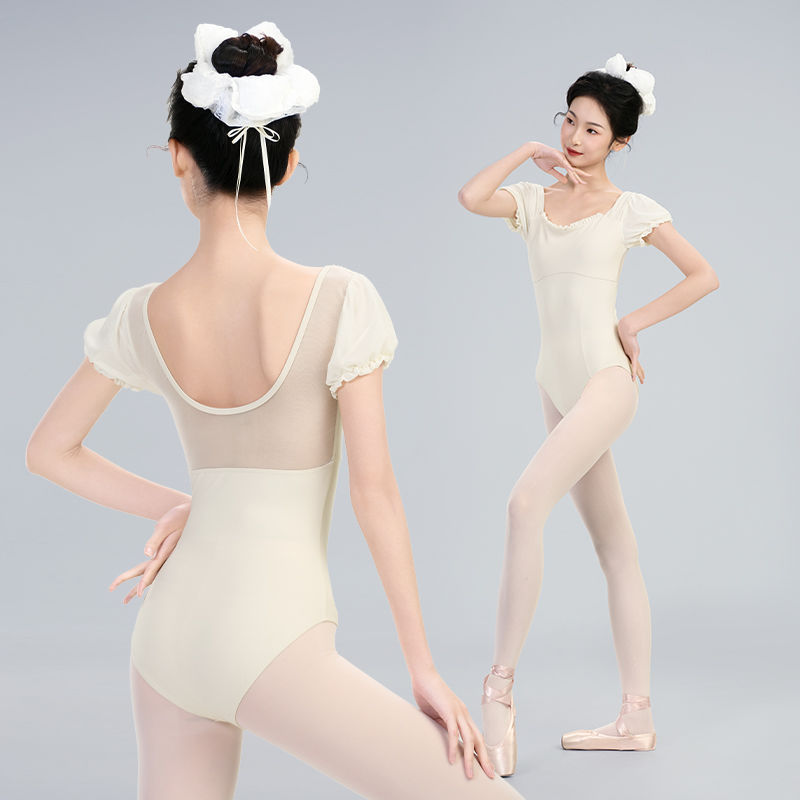 大人のバレエ練習服半袖女性の新しいハイクロッチ夏パフスリーブダンス服体操服ボディ服