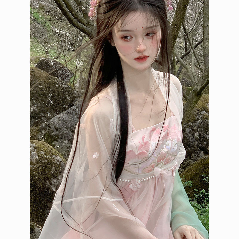 重工業刺繍、胸丈スカート、改良型長袖シャツ、春夏の日常漢服、漢要素、新しい中国風の流仙スカート