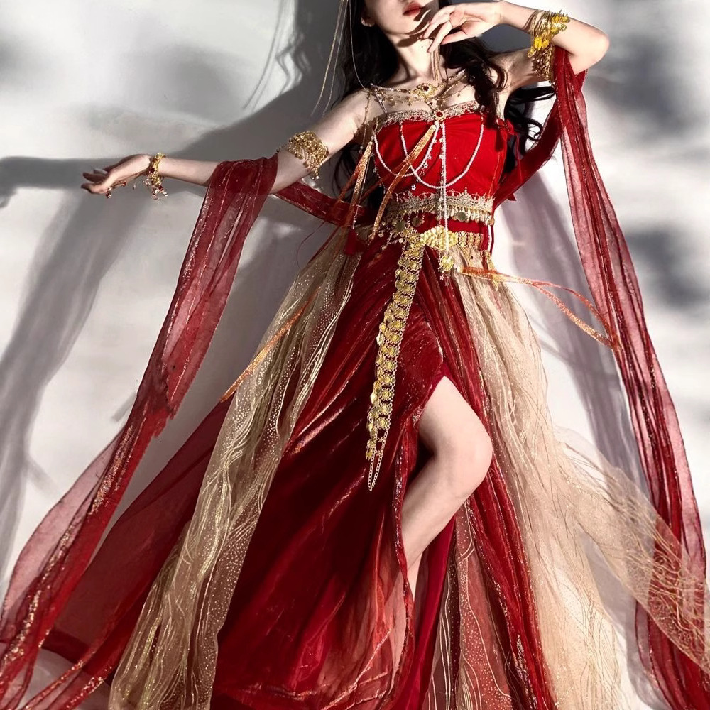 敦煌飛天姫エキゾチックスタイルガール改良漢服西部地域スタイル漢要素ダンス写真スタジオパフォーマンス衣装