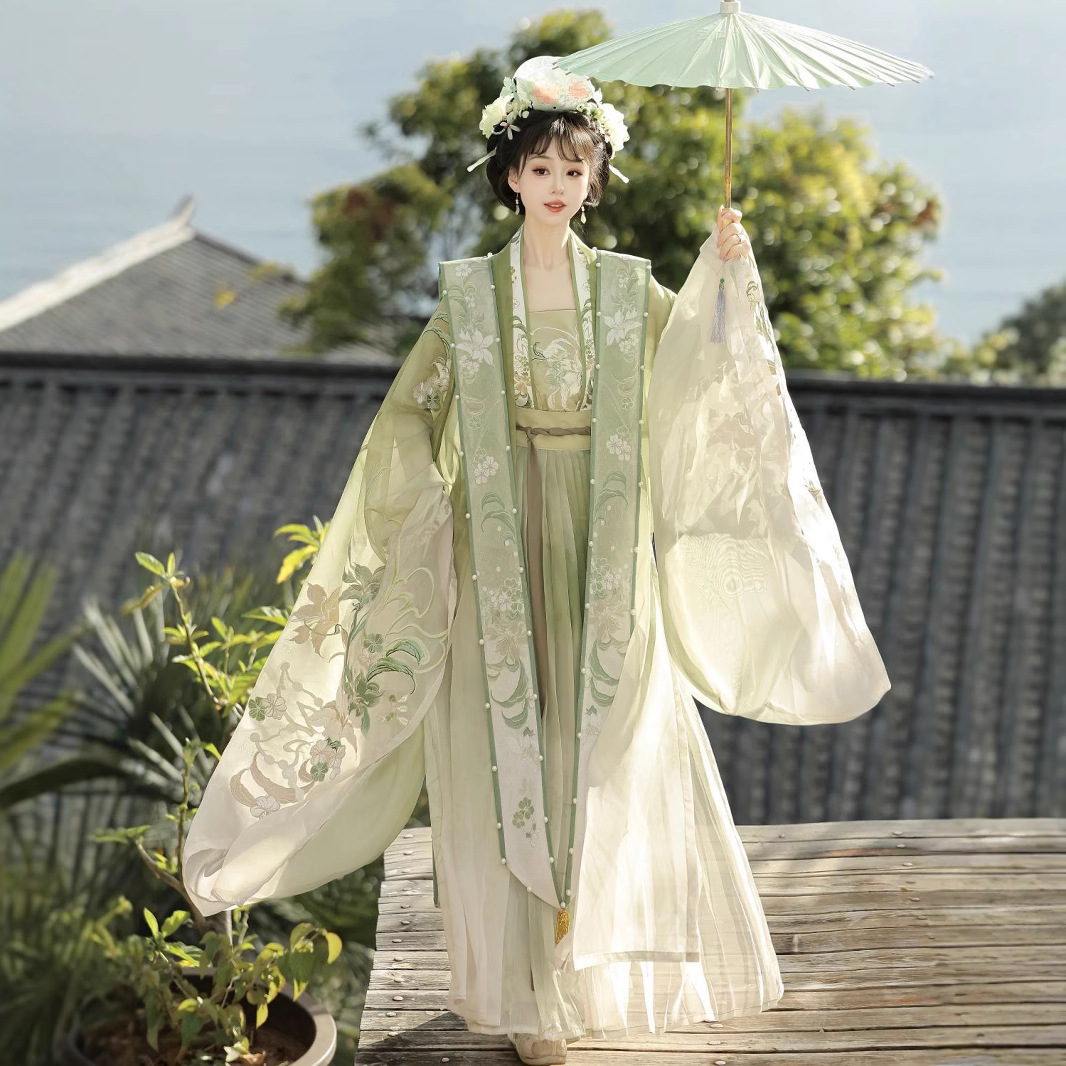 漢服女性の宋時代の重刺繍大袖中国風霞ペイ美しい夏