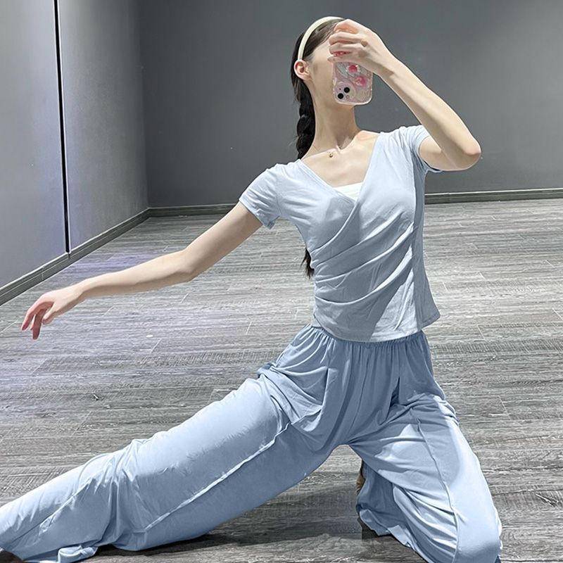 女性用クラシックダンス練習服、Vネックアートテストボディスーツ、スリムモダンチャイニーズダンストップス、半袖