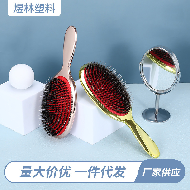 ヘアスタイリングとヘアスタイリング用のクロスボーダー特殊電気メッキ楕円形大型猪毛コーム、エアクッションコーム、マッサージコーム