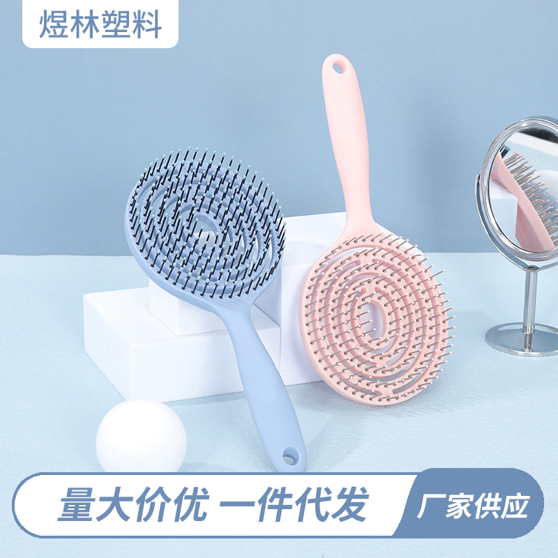 弧状の透かし彫りふわふわ形状の髪を整える骨組みブラシ、家庭用乾湿両用ハンドヘルドマッサージブラシ、回形ブラシ