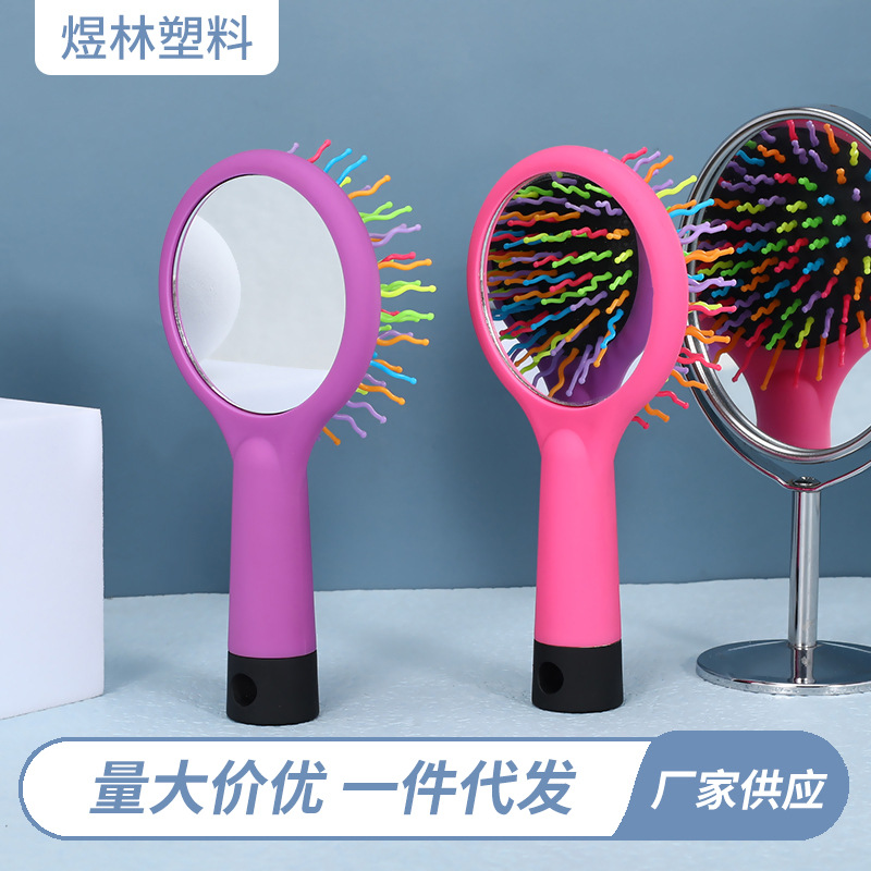 子供の創意カラークッションマッサージ櫛小型携帯旅行二合一鏡櫛順髪櫛