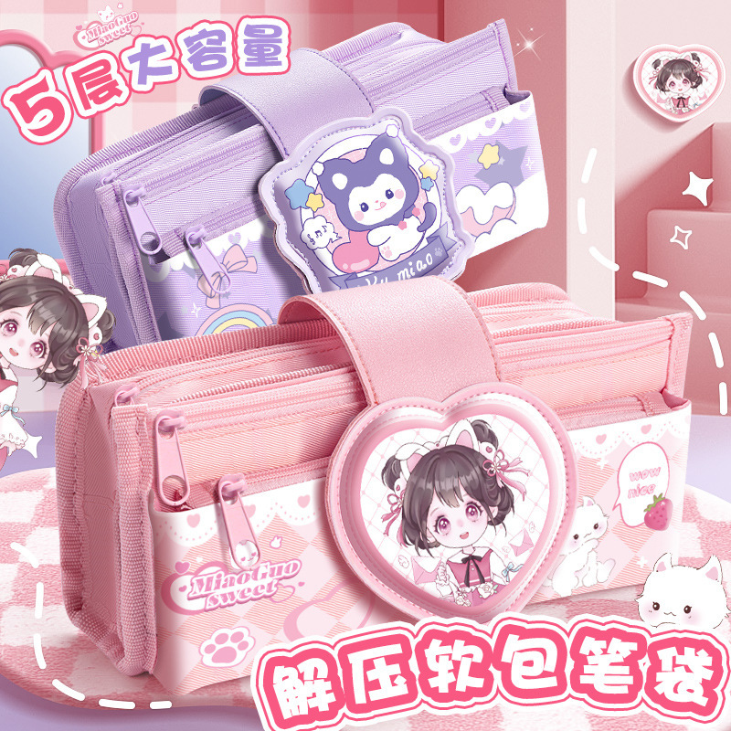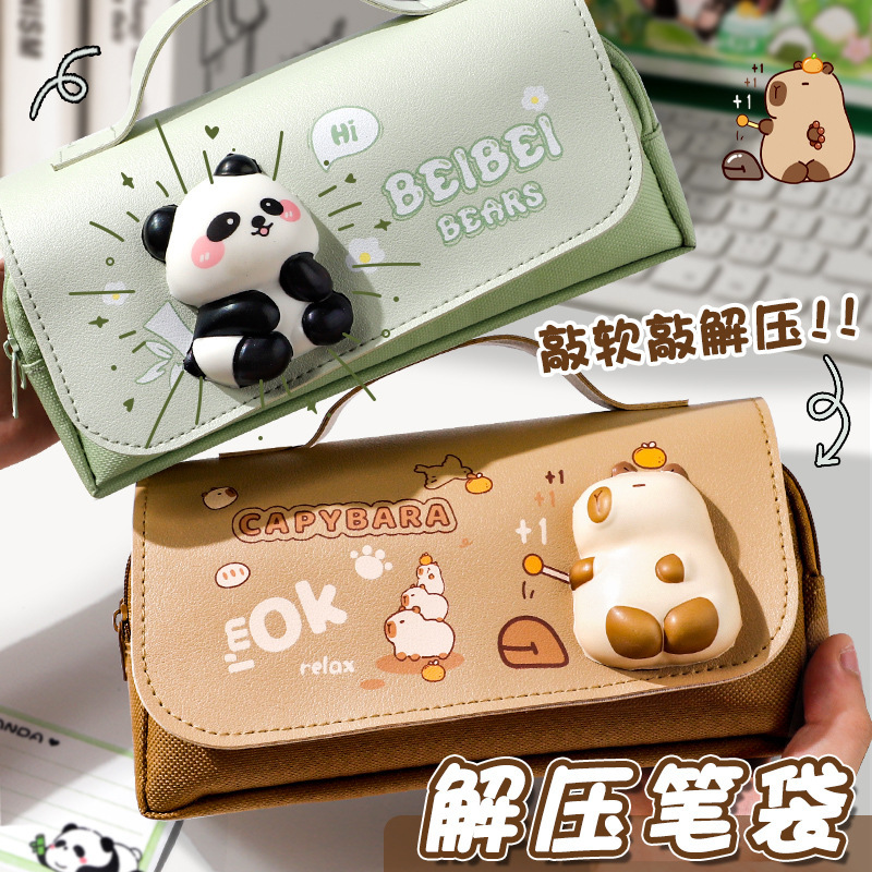 カピバラ筆袋三層大容量文房具箱解圧欧包筆箱高颜値少女心手提げ筆袋