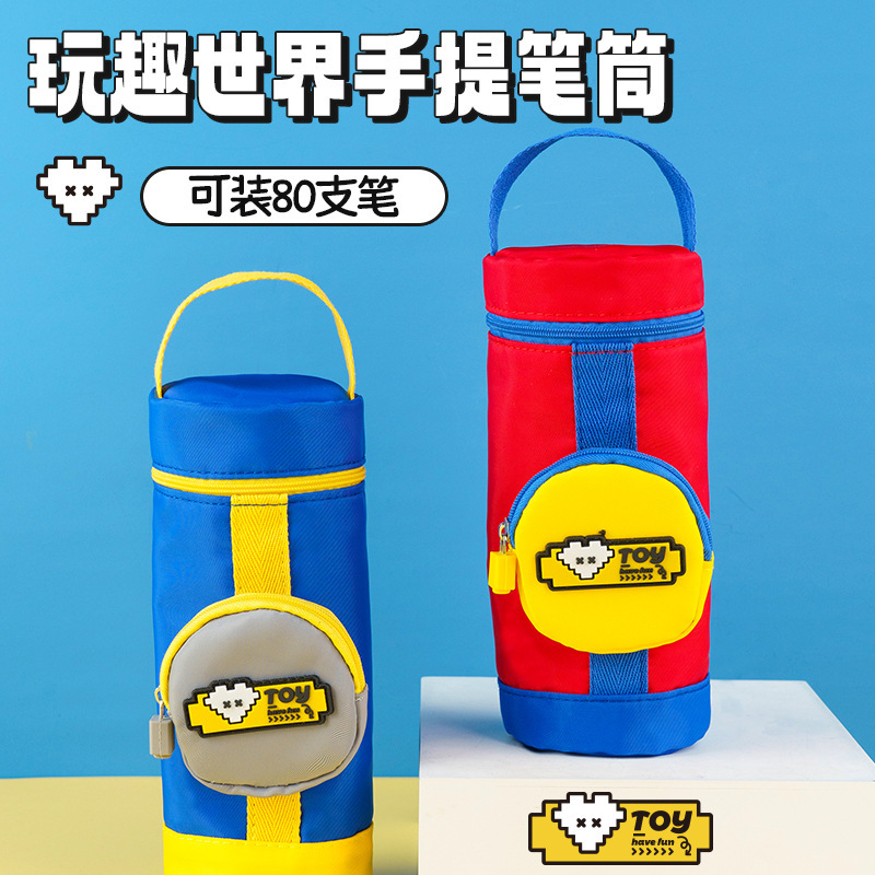 面白い世界の手提げ筆筒創意円筒形大容量筆袋多層文房具収納袋は筆袋を取り外します。
