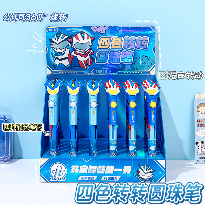 四色ボールペン創意減圧回転ペン可愛い漫画多色ボールペン押し式カラー多機能ペン