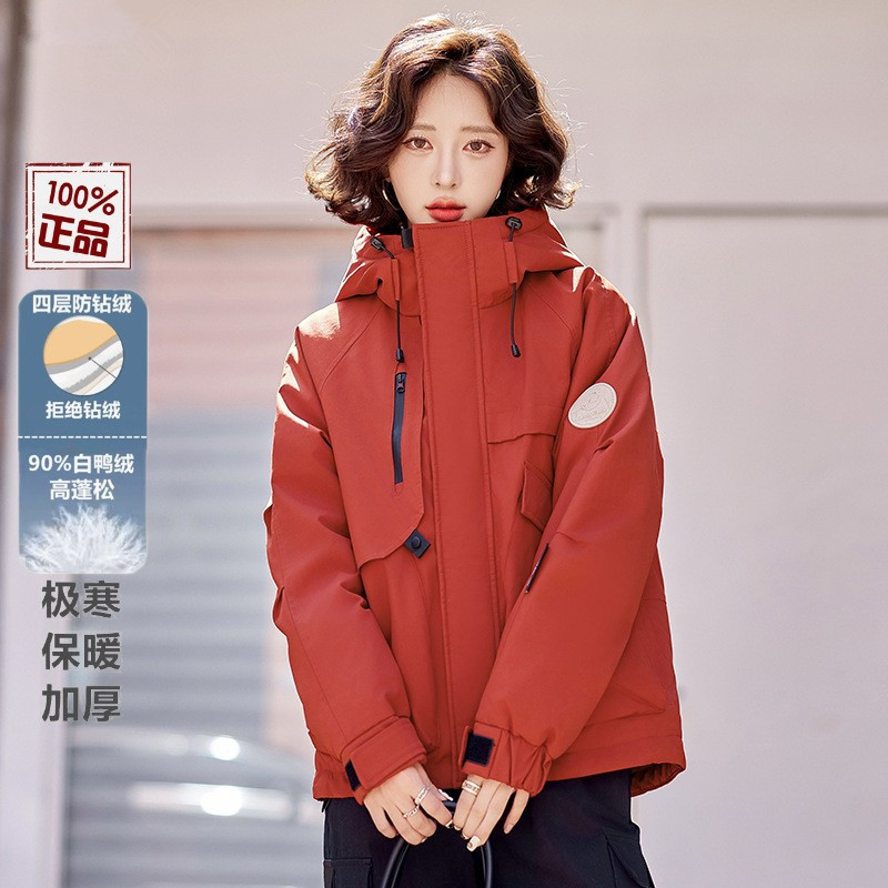 本物の撤退品ダウンジャケット レディース ショート丈 アウトドアジャケット 2025 国家規格90%ホワイトダックダウン ワークウェア パーカー ジャケット トレンド