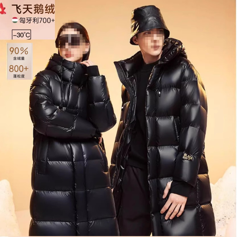 本物のダウンジャケット女性 2025 冬ミッドレングスブラックゴールドグースダウンジャケット男性と女性のための膝上極寒服厚み