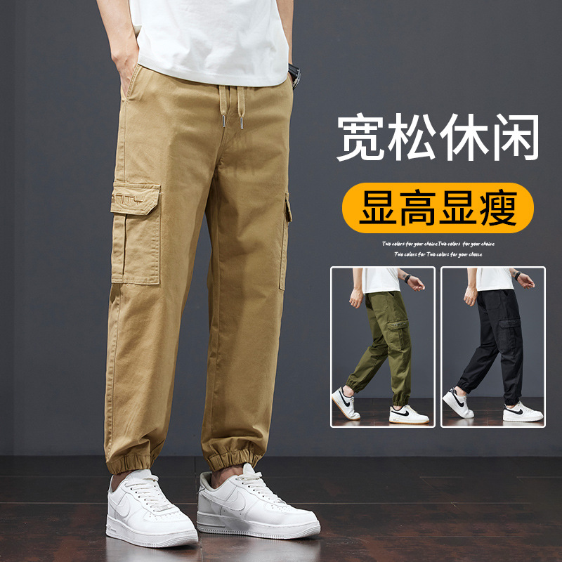 ゆったりと万能なドレープ春秋メンズパンツ香港風吸汗性レギンス若者綿カジュアル9点パンツ