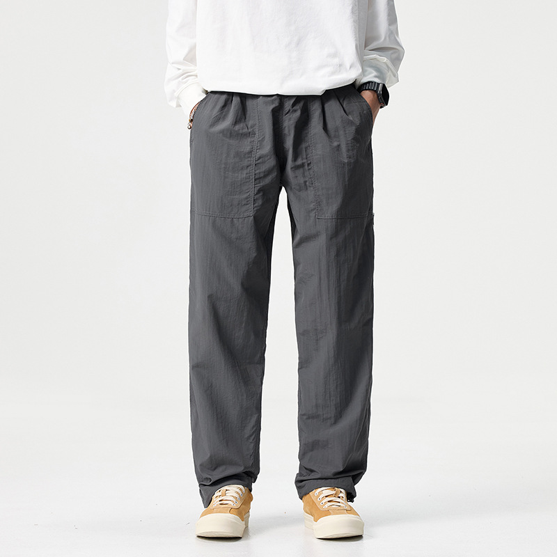 薄いトレンディなレトロセメントグレーデニムパンツメンズ英国スタイルルーズアイスフィール若々しい春と夏多用途