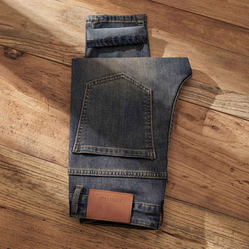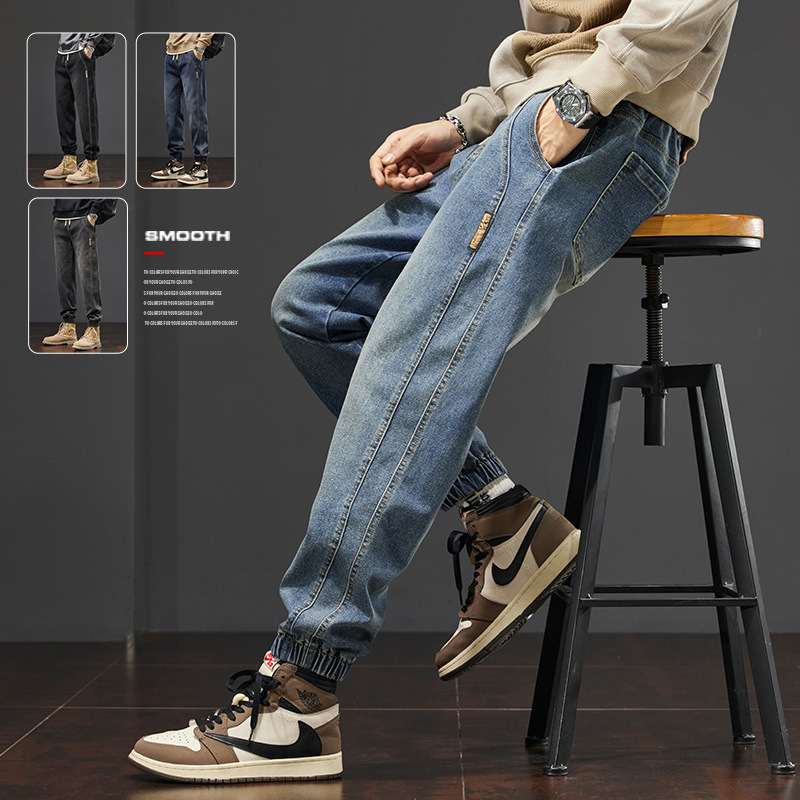 メンズ9点カフス薄型トレンディストレート春秋コントラストカラーユースファッション多用途メンズデニムパンツ