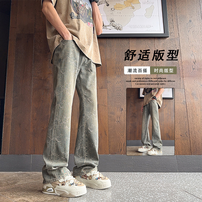 新しいトレンディなルーズメンズカジュアル多用途パンツデニム英国コントラストカラーハンドラブミッドウエスト春と夏のメンズパンツ