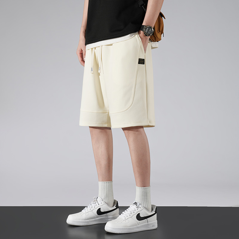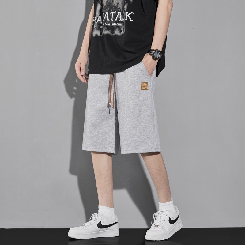 2025 新しい日本のレトロな弾性巾着ショーツ男の子夏シンプルなラベルルーズスポーツ 5 点パンツ