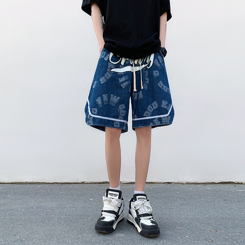 薄いアメリカンレトロプリントトレンディインメンズサマーハイストリートトレンドオールマッチショーツサマージーンズ